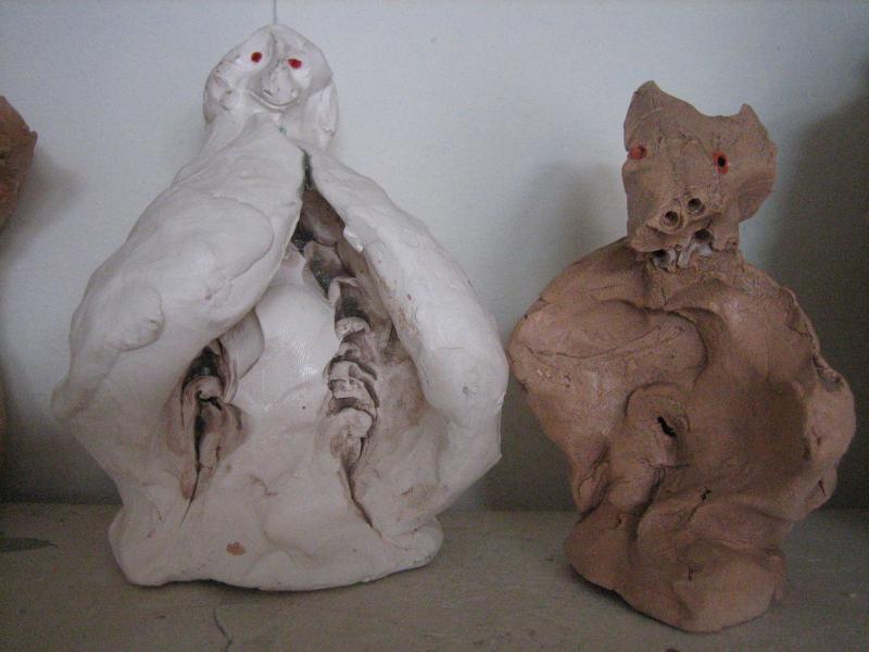 Masks - Masks have universal presence and meaning. These masks are caricatures of the human spirit. They can also be kiln gods.