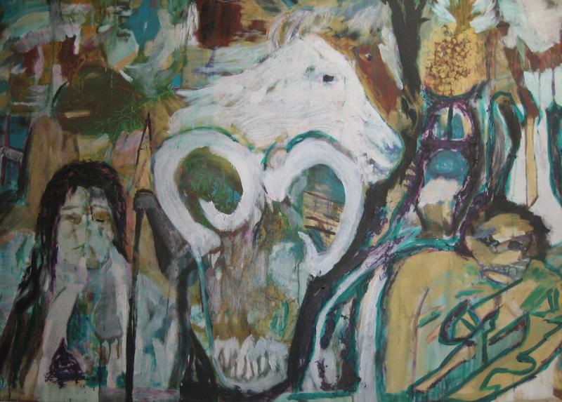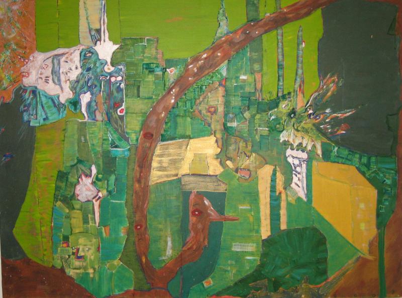 Influenced by the abstract impressionist movement, Roland uses color and form freely on 45x60 or larger canvases or paper.